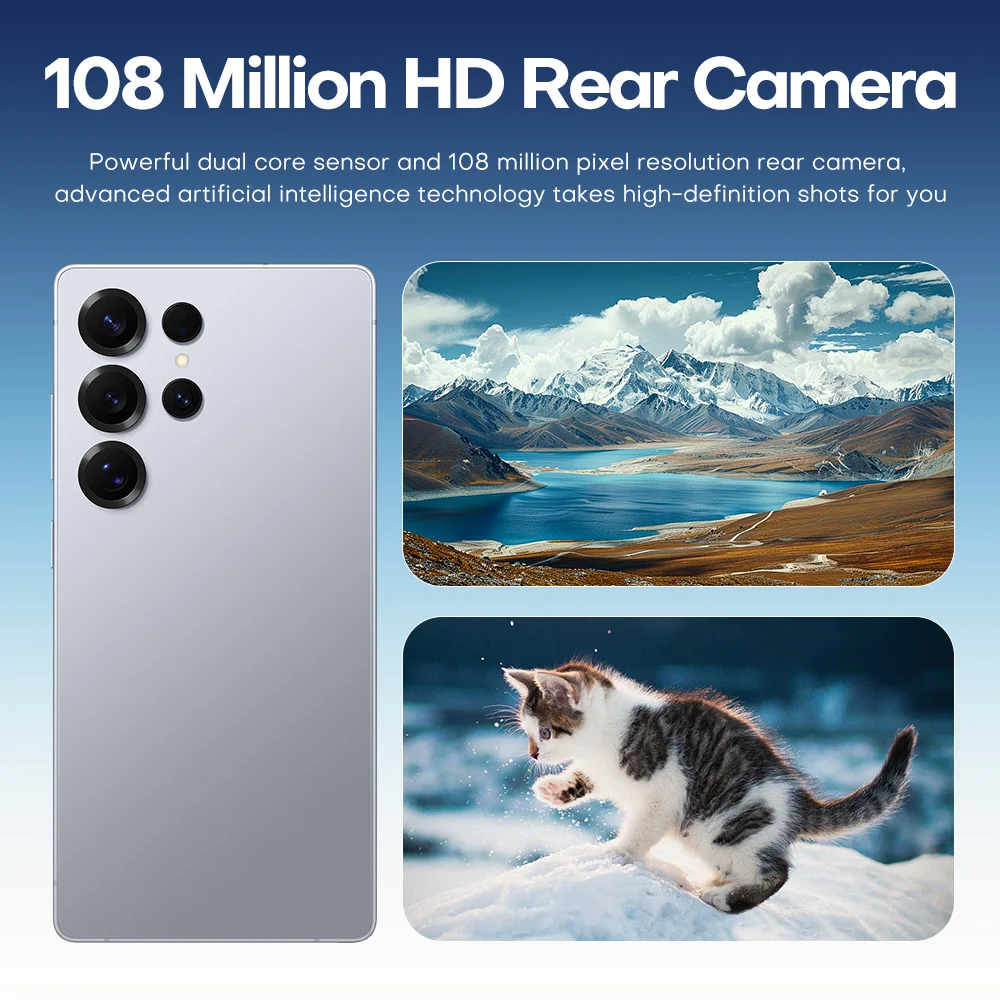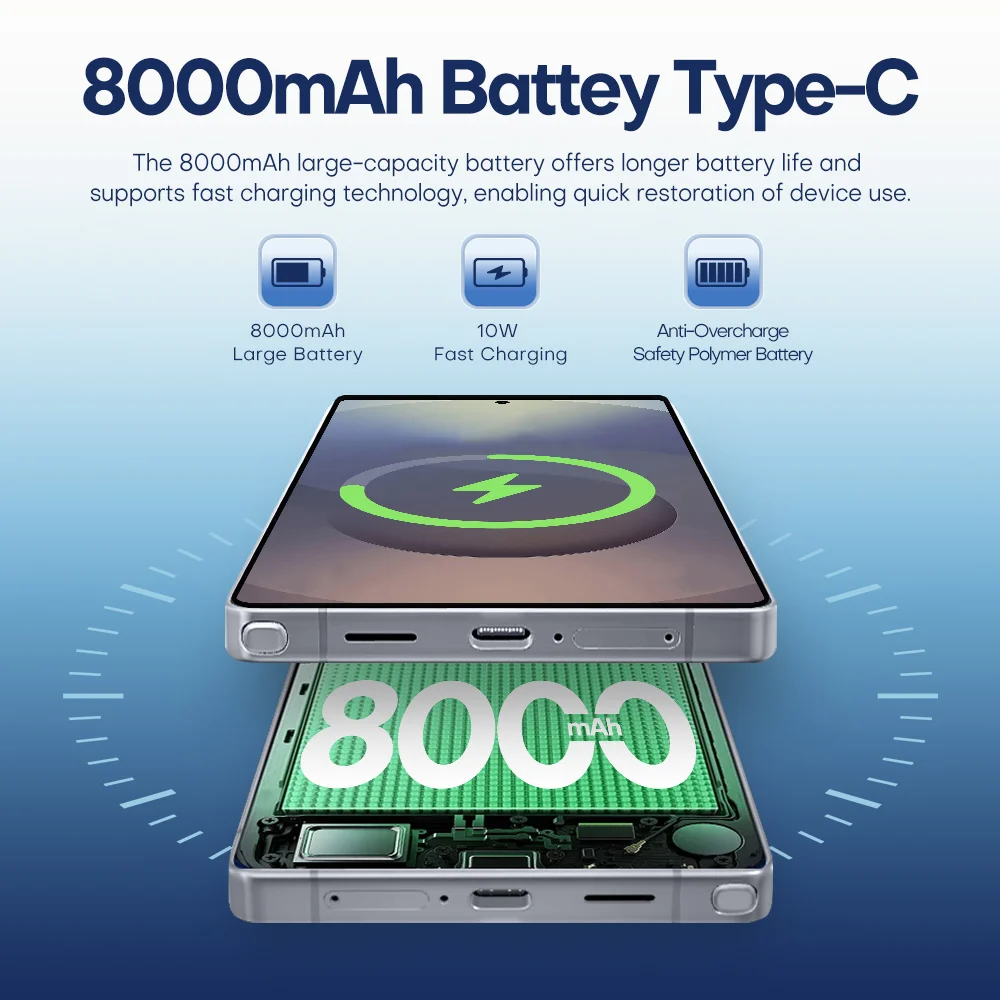 Product Features 1. 6.9-inch full screen with 91% screen-to-body ratio, 1TB ultra-large memory setup, 16G running memory setup. 2. Equipped with HD front and rear cameras, 72MP front camera and 108MP rear camera. 3. Multi card slots, dual card + T card slot. 4. 8000mAh large battery capacity, meet more use needs. Selling Points 1. the product has zero-sensitive light face recognition technology, through zero-sensitive light face recognition technology, zero-sensitive light face recognition technology can accurately recognize the face throughout the whole process, bringing a sci-fi unlocking experience. 2. The product adopts a 6.9-inch incell Sam sung perforated screen of up to 87.3%, allowing you to experience a wider field of vision. In games and videos, more content is displayed and the phone remains compact and lightweight. 3. 16GB ultra-large RAM and 1TB storage space ensure smooth loading of the screen, common game processes resident in the background, and fast switching to other apps.